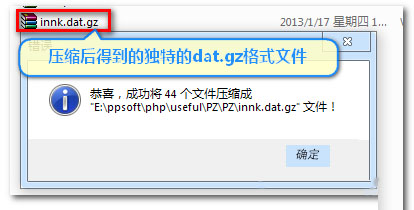 然后就是第二款压缩脚本phpzip了。这款脚本很古老,但是很好用。它分为在电脑上运行的exe程序和在服务器上运行的php脚本两个部分,采用了自己独特的dat格式并搭配gzip压缩,压缩率还不错。
