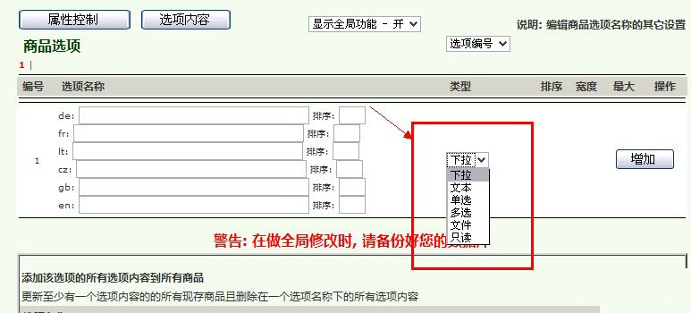 有时候因为一些特殊或不可预的原因, 在后台添加商品属性时,
